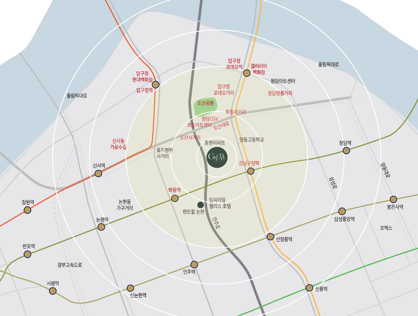 도산대로와 학동로 사이 위치하여 교통망 우수한 지역