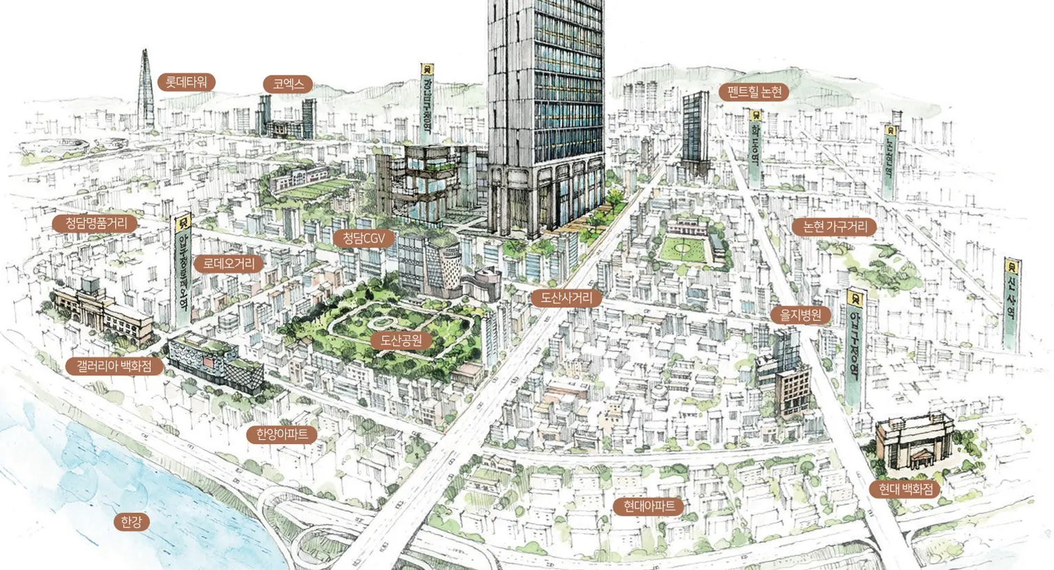 강남 도산사거리 최중심에서, 아름다운 한강 조망과 최상의 인프라를 누리다